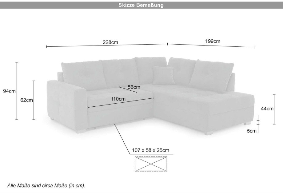Sitztiefe: 56cm mit Kissen/79cm ohne Kissen