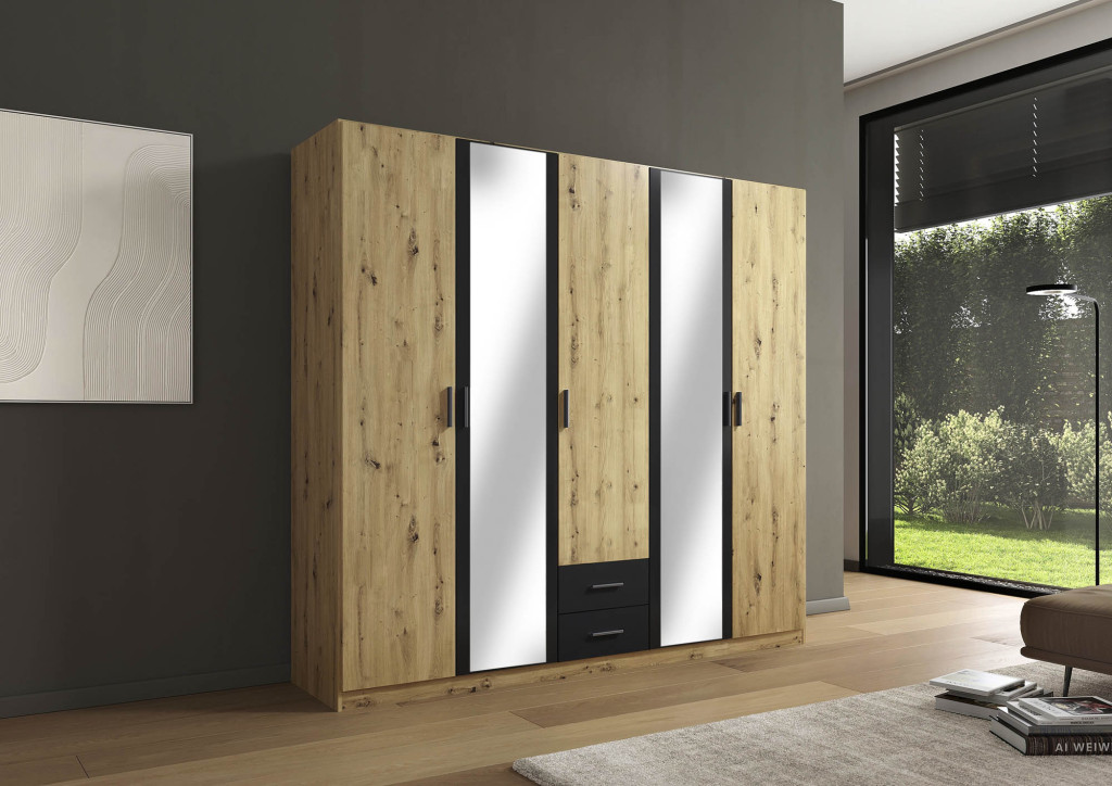 Drehtürenschrank 5-türig, 2 Schubkästen,