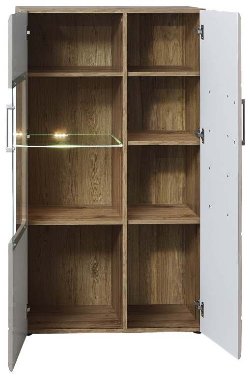 1 Holzboden, 1 Glasboden, 3 offene Fächer